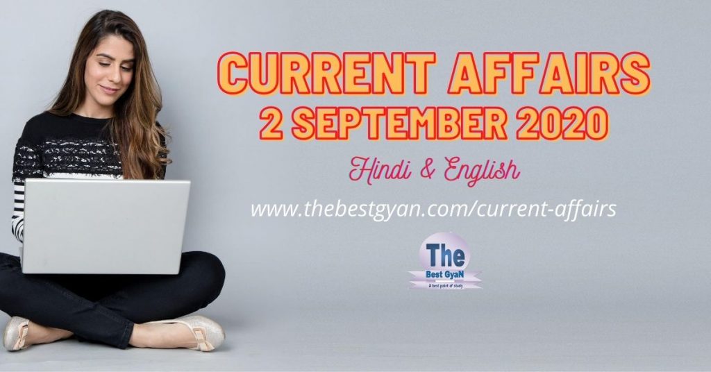 These are the important current affairs questions of 2 September 2020 that will be used in your upcoming competitive exams. Link of current affairs and general knowledge PDF from January to July 2020 is given at the bottom of this page and can be downloaded by clicking on it. >