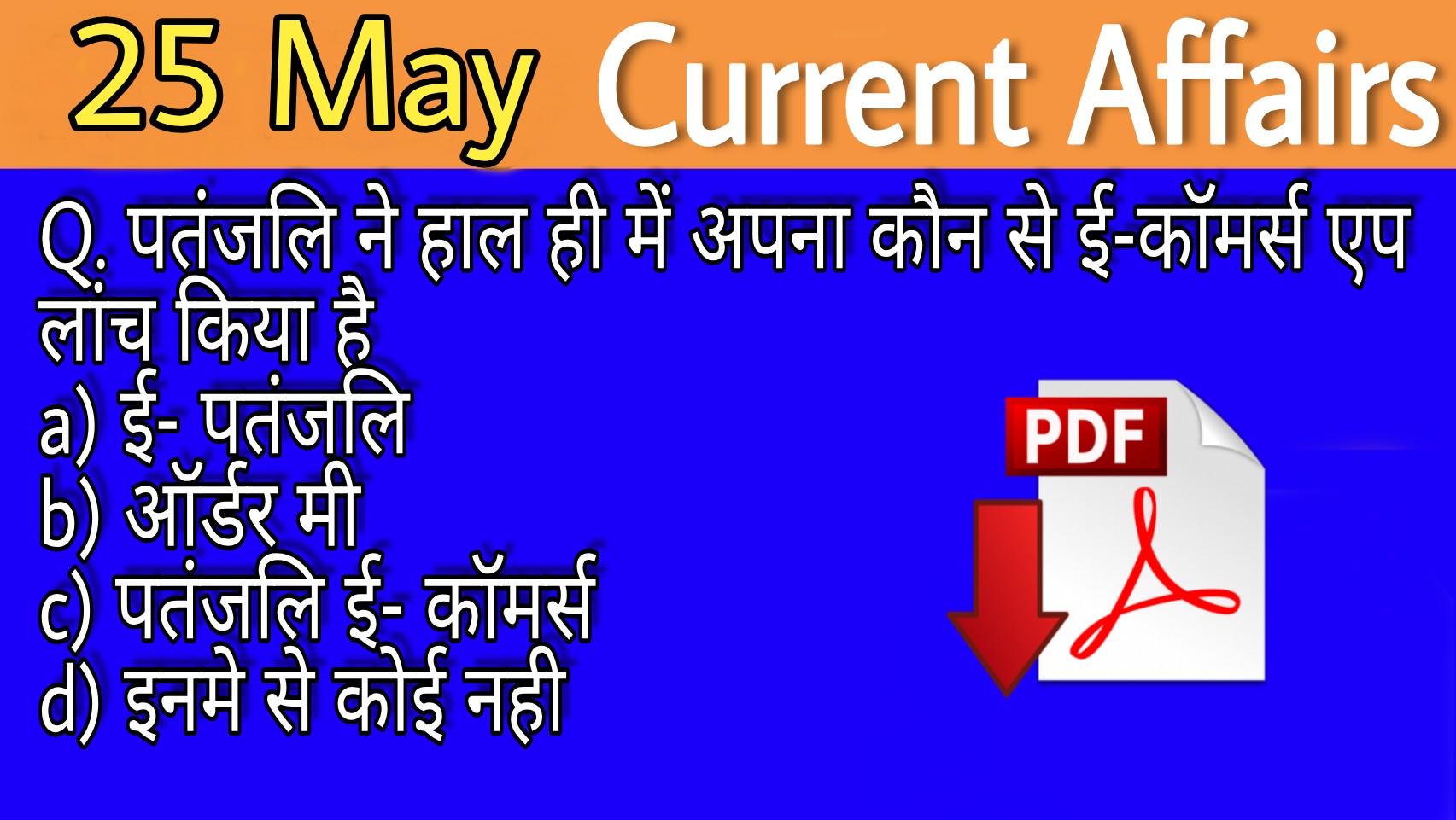 यह 25 मई 2020 के महत्वपूर्ण Current Affairs के प्रश्न है जो आपकी आगामी प्रतियोगी परीक्षाओं में काम आएगें। आज की करेंट अफेयर्स की फ्री PDF का लिंक इस पेज के नीचे दिया गया है उस पर क्लिक करके डाउनलोड कर सकते है।