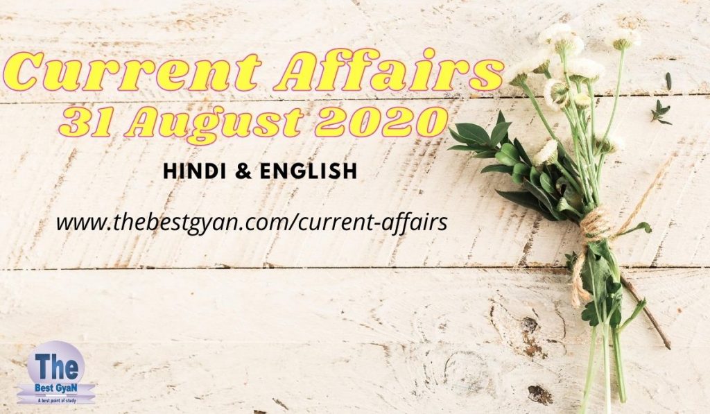 31 August 2020 Current Affairs in Hindi & English