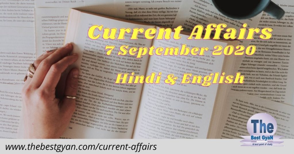7 September 2020 Current Affairs in Hindi & English