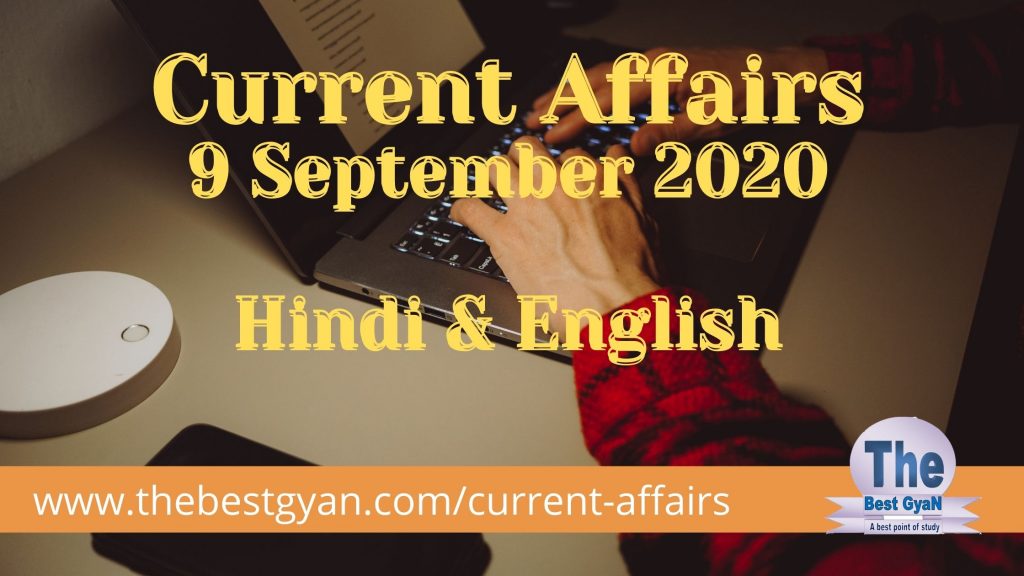 These are the important current affairs questions of 9 September 2020 that will be used in your upcoming competitive exams. Link of current affairs and general knowledge PDF from January to July 2020 is given at the bottom of this page and can be downloaded by clicking on it. >